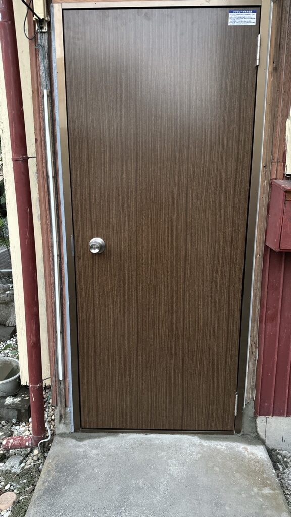 今回のように、扉本体がボロボロになってしまった場合でも、枠に大きな問題がなければ短時間で安全性の高い扉へ交換することが可能です。